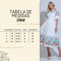 Confeccionado em lese 100% algodão, leve e com textura delicada. Modelagem midi evasê, que valoriza a silhueta com elegância.